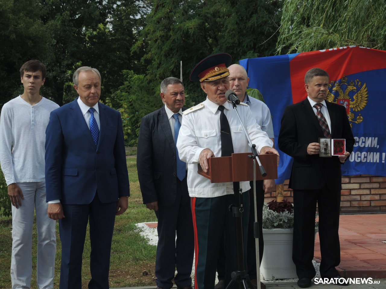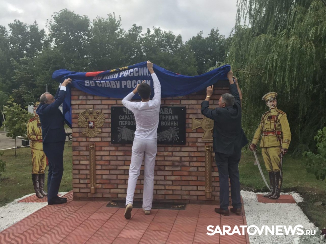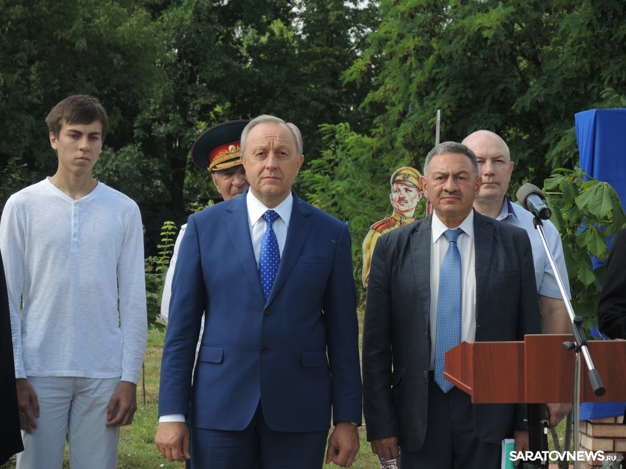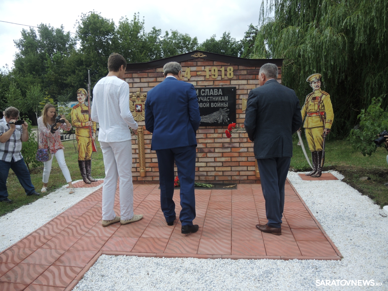 Вместе с Александром Горбенко и директором "Музея трудовой и боевой славы" Борисом Шинчуком врио главы региона открыл мемориал на аллее Воинской славы. После чего присутствующие возложили цветы к памятнику. Мемориал представляет собой стену из кирпичной кладки. Наверху даты - 1914-1918, а ниже закреплена плита из черного гранита, на которой выбита надпись: "Честь и слава саратовцам - участникам Первой мировой войны".