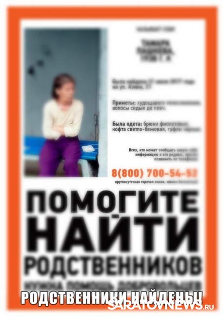 Волонтеры нашли родственников дезориентированной пенсионерки Тамары Пашкевой, которая была найдена сегодня на улице Азина, 21. Информация об этом появилась на официальной страничке поискового отряда "Лиза Алерт".