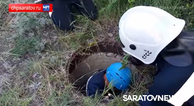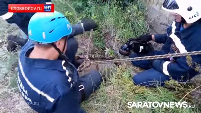 Сотрудники саратовской городской службы спасения помогли местному жителю выбраться из ямы глубиной в 7 метров. Видео спасения мужчины опубликовал портал "ЧП-Саратов".