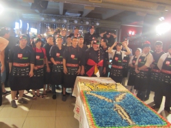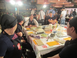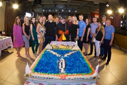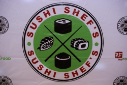 В финале кулинарного марафона - все участники и гости устроили продолжительную фото-сессию с гигантским панно из роллов, а затем каждый смог оценить кулинарное мастерство и попробовать герб на вкус.