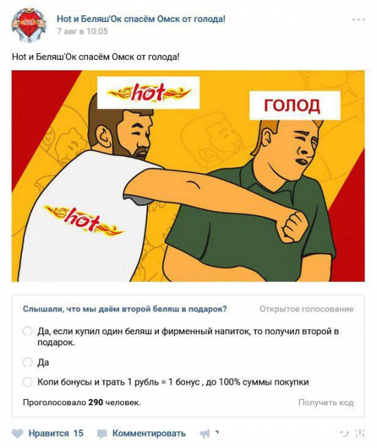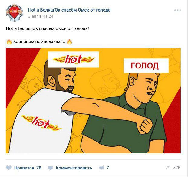 кафе: "Hot и Беляш'Ок спасем Омск от голода!" В предыдущем посте закусочная "объяснила"