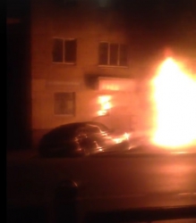 По данным очевидцев, предположительно, легковушка попала в аварию, после чего вспыхнула. Свидетели не исключают, что машина врезалась в жилой дом. Владельца машины на месте происшествия не заметили.