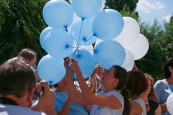 В торжественном разрезании ленточки участвовали сотрудники банка и жители города.