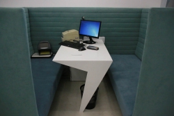 Новый "офис будущего" отличает современный дизайн, предлагающий уют и комфорт как для клиентов, так и для сотрудников. В зоне ожидания установлены мягкие и комфортные диваны, предназначенные сделать время пребывания в банке максимально удобным. В фойе установлено устройство "Сбербанк заряжает". Клиенты отделения могут быстро и оперативно зарядить на нем свои гаджеты. Весь интерьер выполнен в мягких и спокойных тонах, большие окна завешаны белыми гардинами. Все вместе создает уютную домашнюю обстановку, а зеркала на стенах и новое освещение делает пространство более объемным. "Клиенты очень радуются, что все операции совершаются в таких комфортных условиях", - отметила менеджер отделения.