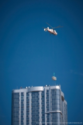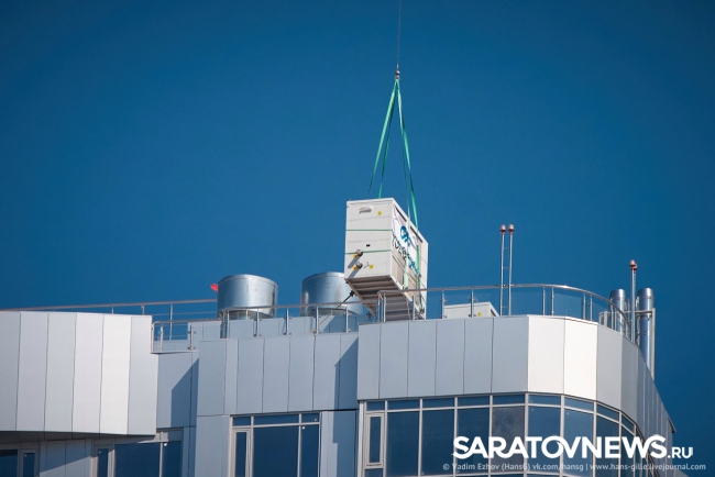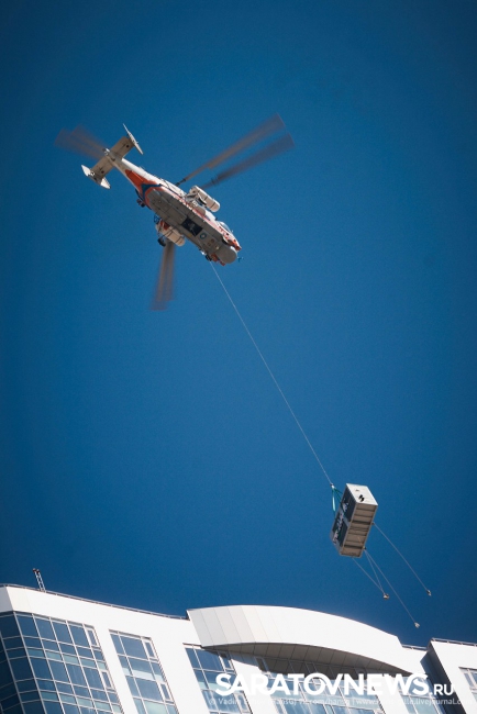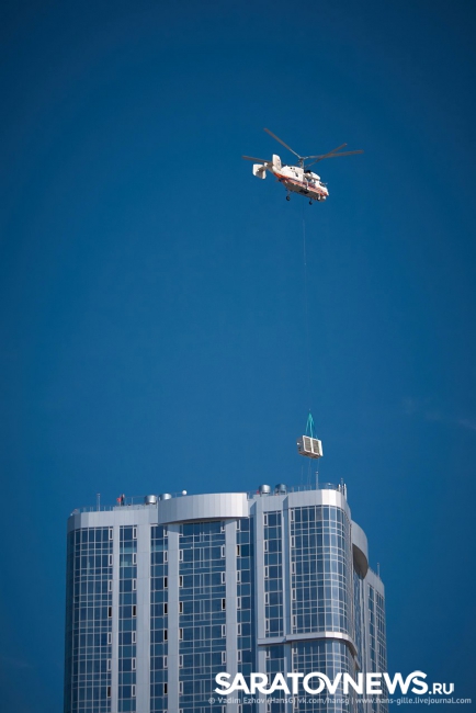 Как выяснил Saratovnews у представителей ЖК "Volga Sky Saratov", чтобы доставить на крышу 18 чиллеров для установки единой системы кондиционирования здания был приглашен вертолет МЧС.