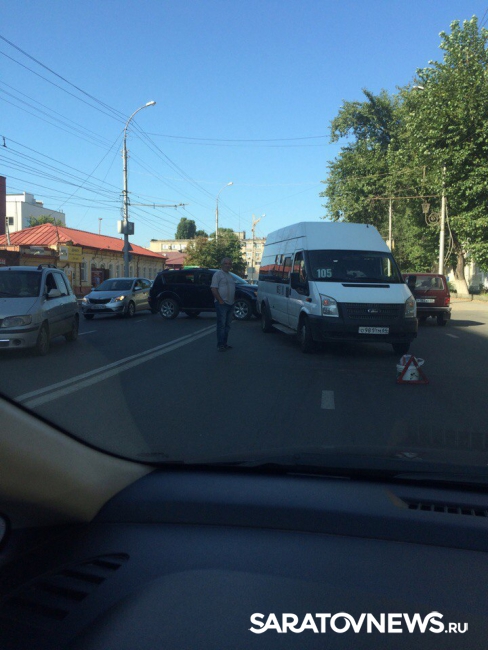 Около получаса назад на пересечении Новоузенской и Чернышевского "Мицубиси Аутлендер" врезался в микроавтобус "Форд Транзит" (маршрут № 105). По предварительным данным, в аварии никто не пострадал. Водители транспортных средств ожидают сотрудников ГИБДД.