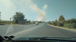 "Сухая трава загорелась на Московском шоссе, неподалеку от КП ГАИ. Площадь возгорания составила два гектара. В настоящее время пожарные продолжаются бороться с огнем. Угрозы жизни и здоровью граждан нет", - пояснили в ведомстве.