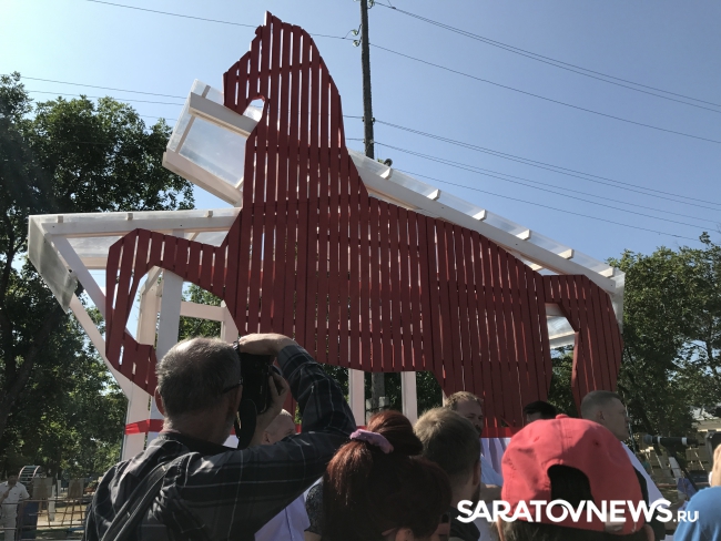 Перед открытием арт-объекта, созданного по мотивам знаменитой картины Кузьмы Петрова-Водкина, председатель Президиума ФРСИ Иван Демидов рассказал о том, что ждёт горожан внутри беседки. "Мы решили попробовать сделать большого "Красного коня", а затем мы развили эту тему и решили сделать городской павильон. Это уникальное явление, аналогов которому нет в России. Мы добавили в беседку wi-fi, розетки для зарядки гаджетов, ну и самое простое - это скамейки", - поделился Иван Демидов, который также поблагодарил организатора этого фестиваля, председателя Государственной думы Вячеслава Володина и врио главы региона Валерия Радаева.