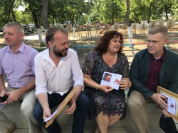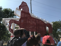 После этого городская беседка была официально открыта. Внутри гостей праздника ждали подарки - открытки с изображением картины "Красный конь" и нового арт-объекта.