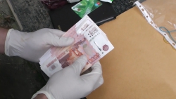 После задержания сотрудники УФСБ осматривают его сумку, где находят 100 тысяч рублей и муляжи банкнот на еще 200 тысяч рублей.