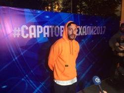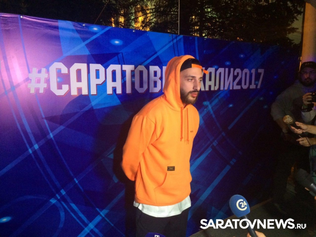 На пресс-подходе реп-исполнитель пожелал саратовским первокурсникам "не бояться делать и творить". А затем со сцены сделал комплимент саратовским девушкам. "Столько девушек красивых на первый курс поступили", - сказал рэпер. Кроме того исполнитель сравнил себя с Юрием Гагариным, заявив, что когда-то тут приземлился он. "А сегодня в центре города приземлился я", - сказал он.