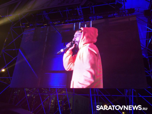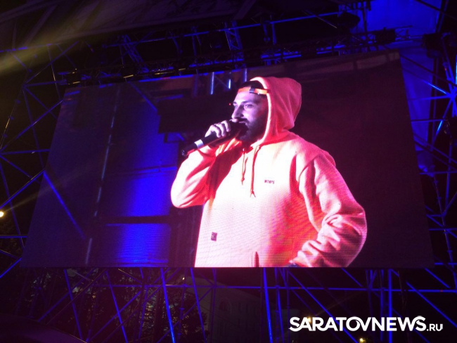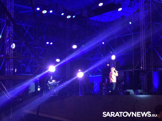 На Театральной площади Саратова продолжается фестиваль первокурсников "Поехали". Перед зрителями выступил певец ALEKSEEV, после чего на сцену вышел участник продюсерского центра Black Star - рэпер L'one.