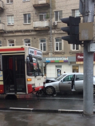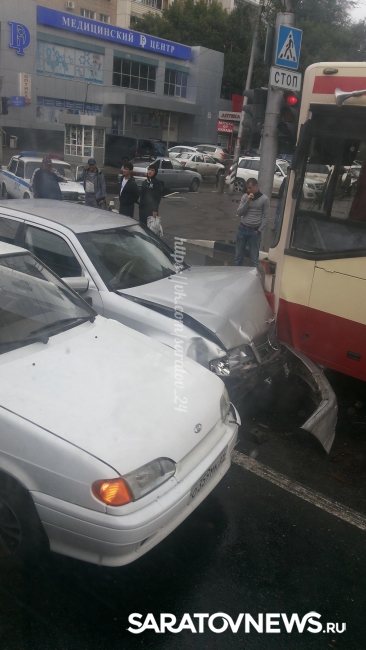 Сегодня в центре Саратова произошло ДТП с участием общественного транспорта. Об этом сообщили очевидцы в группе "Саратов онлайн" в социальной сети "Вконтакте".