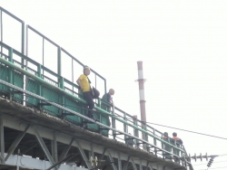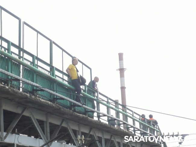 На место приехали сотрудники экстренных служб, которые начали переговоры с саратовцем, которые успеха не возымели. Движение поездов на участке было приостановлено. Спасатели развернули под мостом "куб жизни", на который в результате и спрыгнул саратовец.
