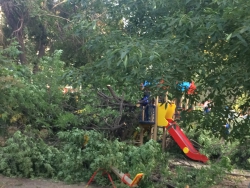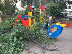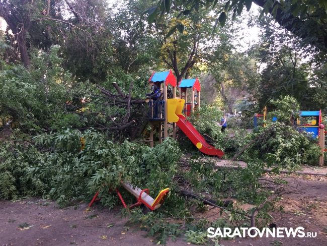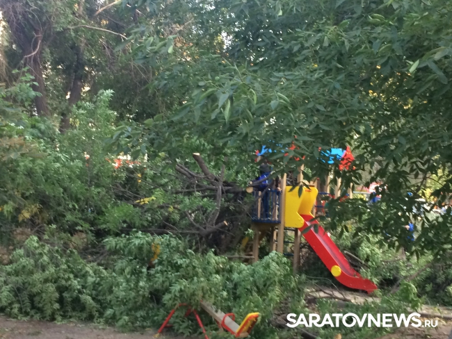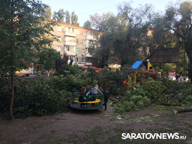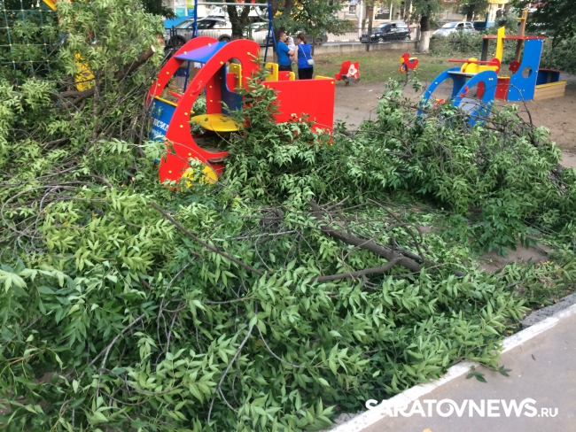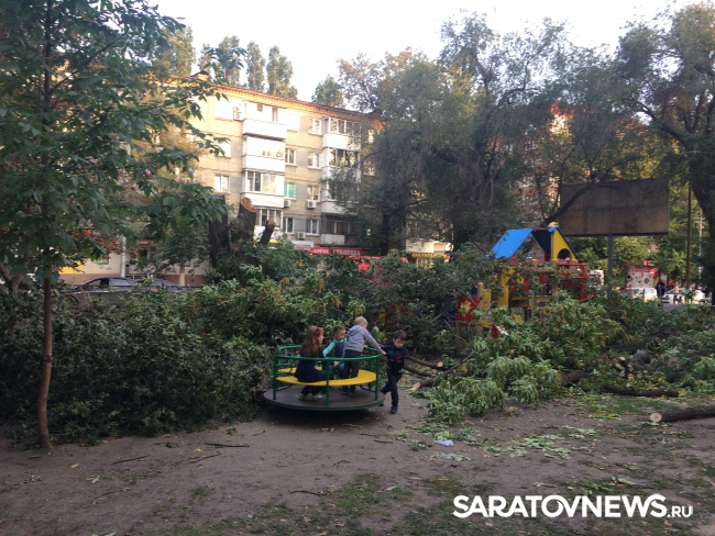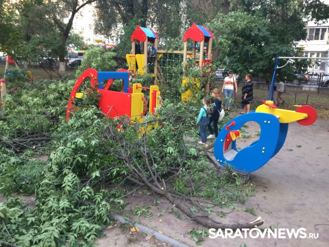 "Мы пришли на площадку вечером и очень удивились. Мой сын играть не стал - это опасно, но там было много играющих детей. Родителям некуда деваться, это единственная поблизости современная площадка, которую, кстати не так давно установили. Не удивлюсь, если часть инвентаря окажется поврежденной, когда ветки вывезут", - сказала саратовчанка Елена Степанова.