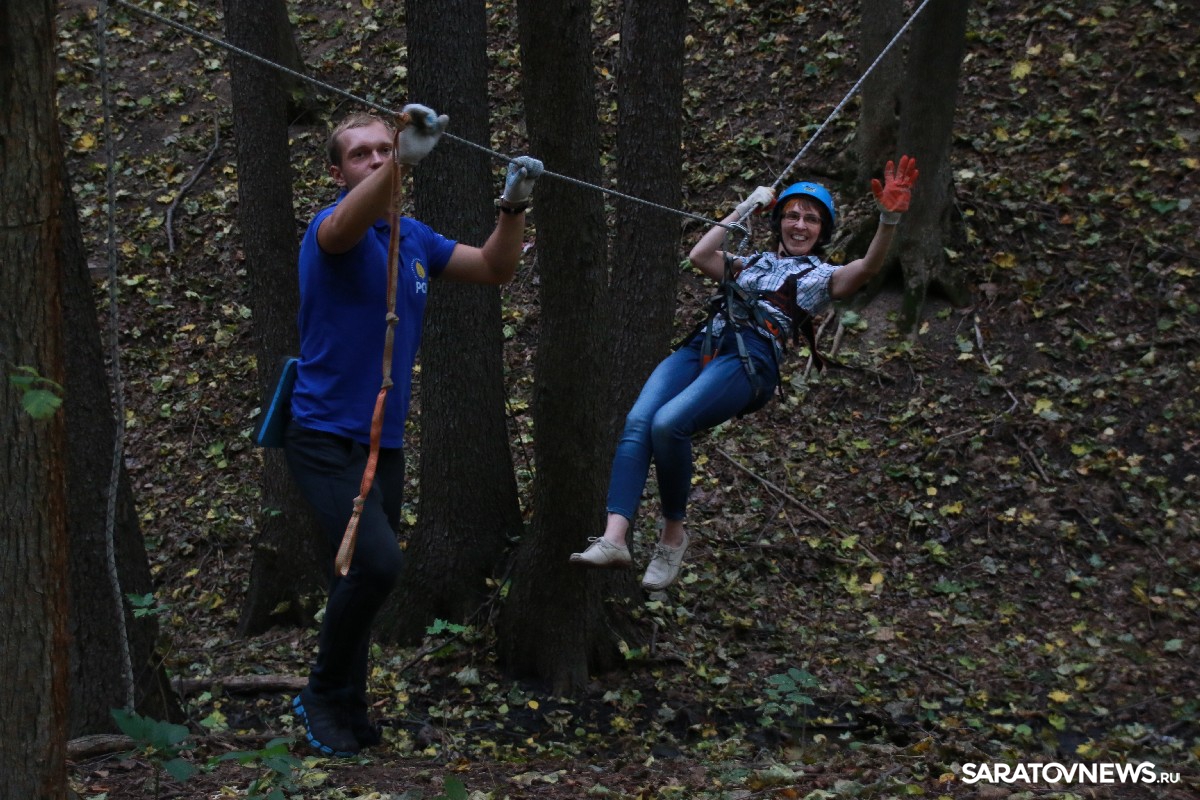 Предлагаемая турпрограмма предназначена для любителей активного отдыха. Кроме пешей прогулки, туристов ожидают спортивные развелечения от клуба приключений "Точка отрыва". Журналисты смогли попробовать свои силы в стрельбе из спортивного лука по мишеням. Также в программе предлагается экстрим-спуск по натянутой между деревьями веревке. Новый турмаршрут предлагает узнать интересные факты о Саратове и почувствовать единение с природой.