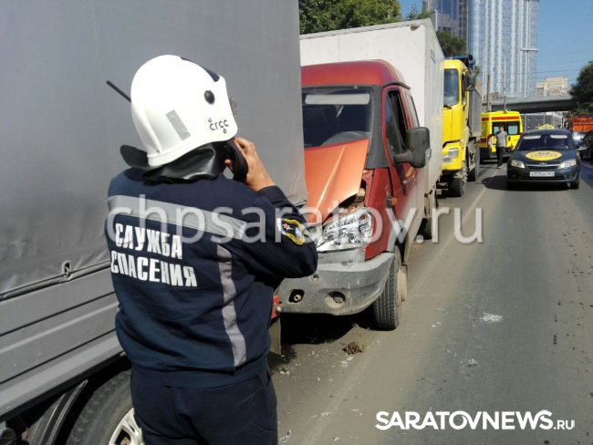 Сегодня в Саратове столкнулись три грузовых автомобилях. По информации "ЧП Саратов", в результате аварии пострадал ребёнок.