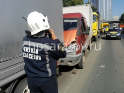 На улице Большая Затонская в районе Предмостовой площади водитель грузовика "Донгфенг" не соблюдал безопасную дистанцию и допустил столкновение с впереди идущей "ГАЗелью", которая врезалась в ещё одну "ГАЗель".