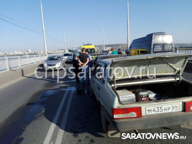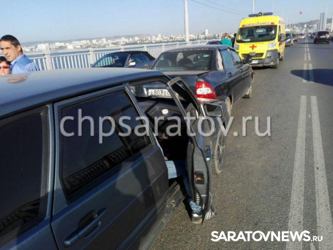В массовой аварии на мосту Саратов-Энгельс пострадала пассажирка отечественной легковушки. Как сообщает портал ЧП-Саратов, столкнулись "Лада Приора", "четырнадцатая" и "девяносто девятая".