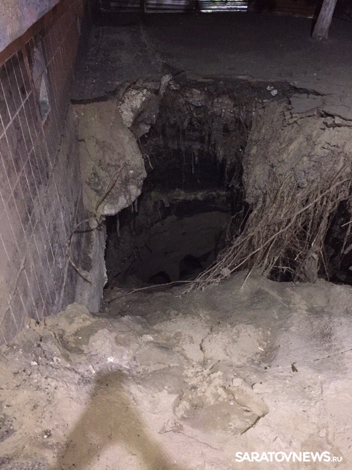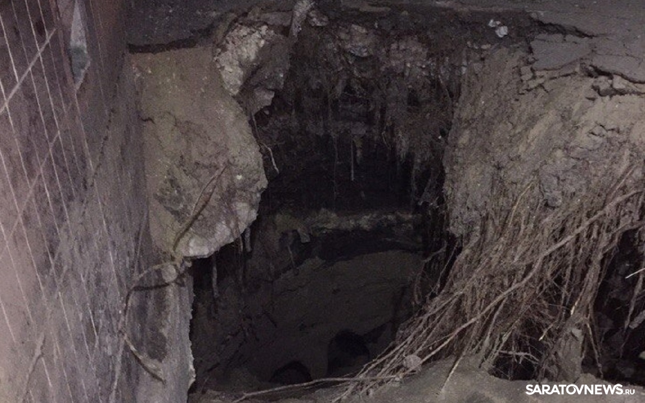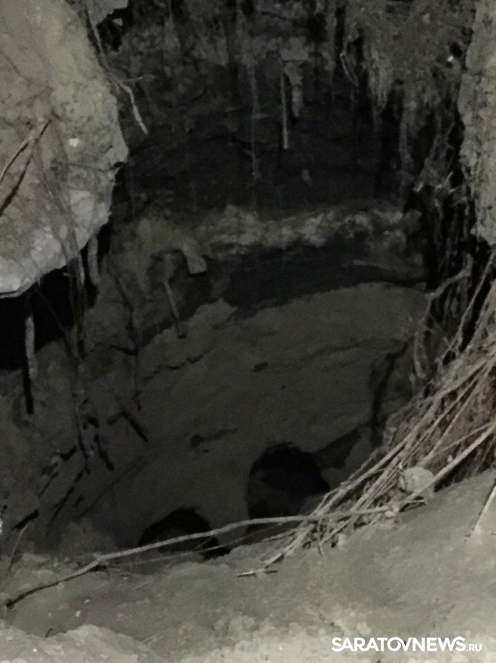 В Заводском районе Саратова на улице Орджоникидзе около подъезда жилого дома №12а провалился асфальт. В результате рядом с домом образовалась огромная яма диаметром более двух метров и глубиной в несколько метров. Об этом сообщили очевидцы произошедшего в группе "Заводской Online" в социальной сети "Вконтакте".