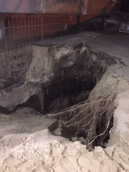 Образовавшийся вчера провал грунта находчивые горожане назвали "ямой в ад".