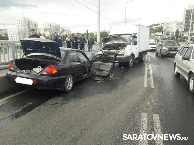 По предварительным данным, около 14:00, не доезжая 200 метров до Саратова, на мосту столкнулись автомобили "Киа", грузовая "ГАЗель", "Лада Ларгус", "Лифан" и еще одна "Киа". В результате аварии пострадали водитель и пассажир, находившиеся в первой иномарке "Киа".