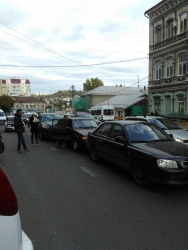 По словам очевидцев, на улице Радищева между Кутякова и Московской кроссовер "Мазда CX-5" въехала в едущую перед ней легковушку, которая, в свою очередь, врезалась в идущий перед ней "Хундай ".
