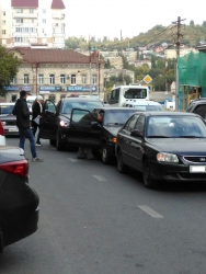 В результате аварии на данном участке скопились автомобили, движение затруднено. Автомобилисты вынуждены объезжать столкнувшиеся автомобили по второй полосе дороги.