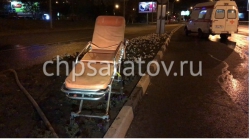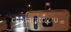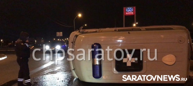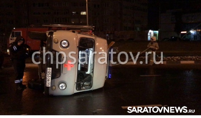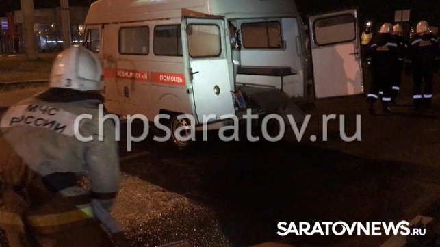 Портал "ЧП-Саратов" опубликовал видеозапись с места аварии с участием машины скорой помощи, в которой пострадали три человека. По данным СМИ, травмы получили водитель "скорой", а также врач и фельдшер. На видео видно, как спасатели поставили опрокинувшуюся на бок скорую на колеса, а врачи "скорой" помогли пострадавшим коллегам.
