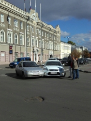 Недалеко от здания городской администрации, Саратовской областной думы и музея имени Радищева, на персечении Первомайской с Радищева, не разъехались "десятка" и "Форд. В настоящее время движение на месте аварии затруднено. Участники аварии ожидают прибытия сотрудников ГИБДД.