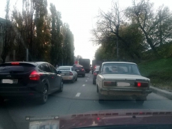 На дороге образовался крупный затор, в пробку попали водители, которые ехали из Солнечного и Елшанки.