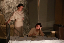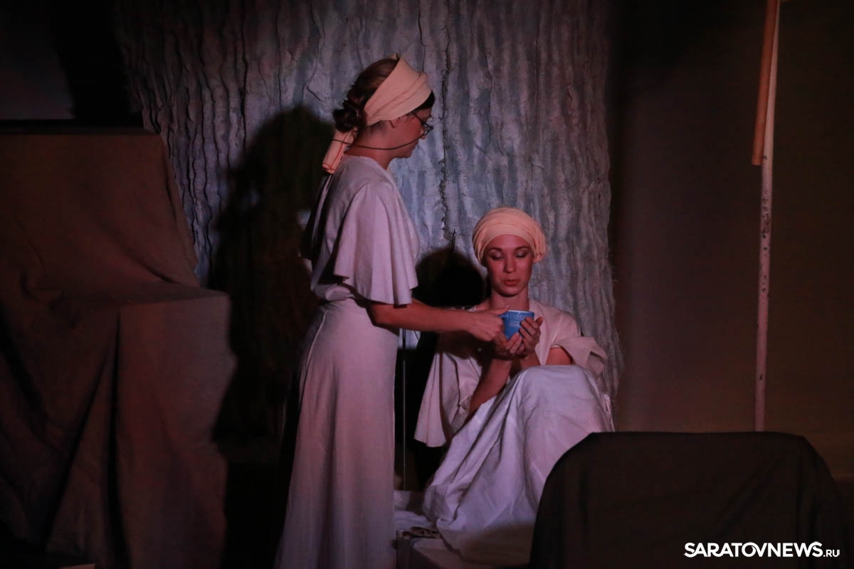 Зрители и почетная гостья увидели постановку под названием "Письма через... наоборот", режиссер - Ия Воробьева. Именно ее решением стала театральная интерпретация биографической драмы исключительно женским составом актеров. Историю девочки Аси рассказали девять актрис театра. Вокруг центральной героини выстроилась история семейного рода, нескольких поколений, демонстрирующих любовь к жизни, стойкость характера, верность семье и близким.