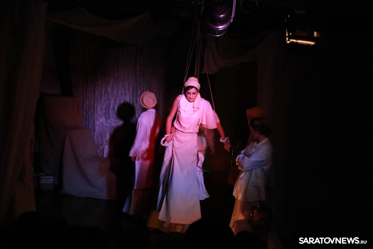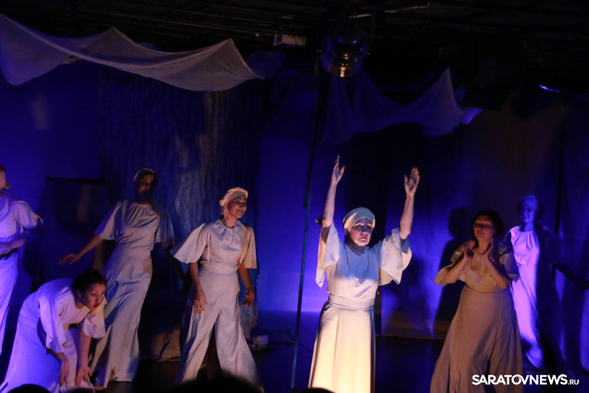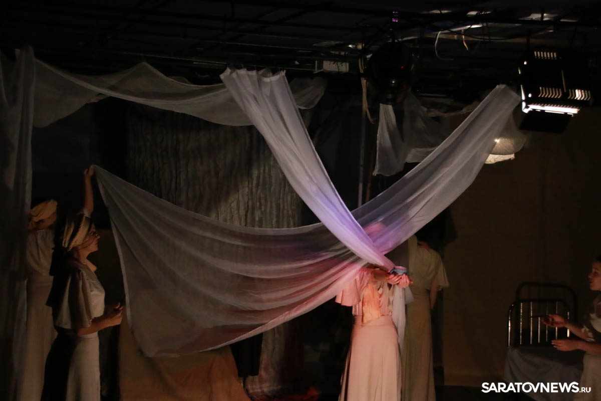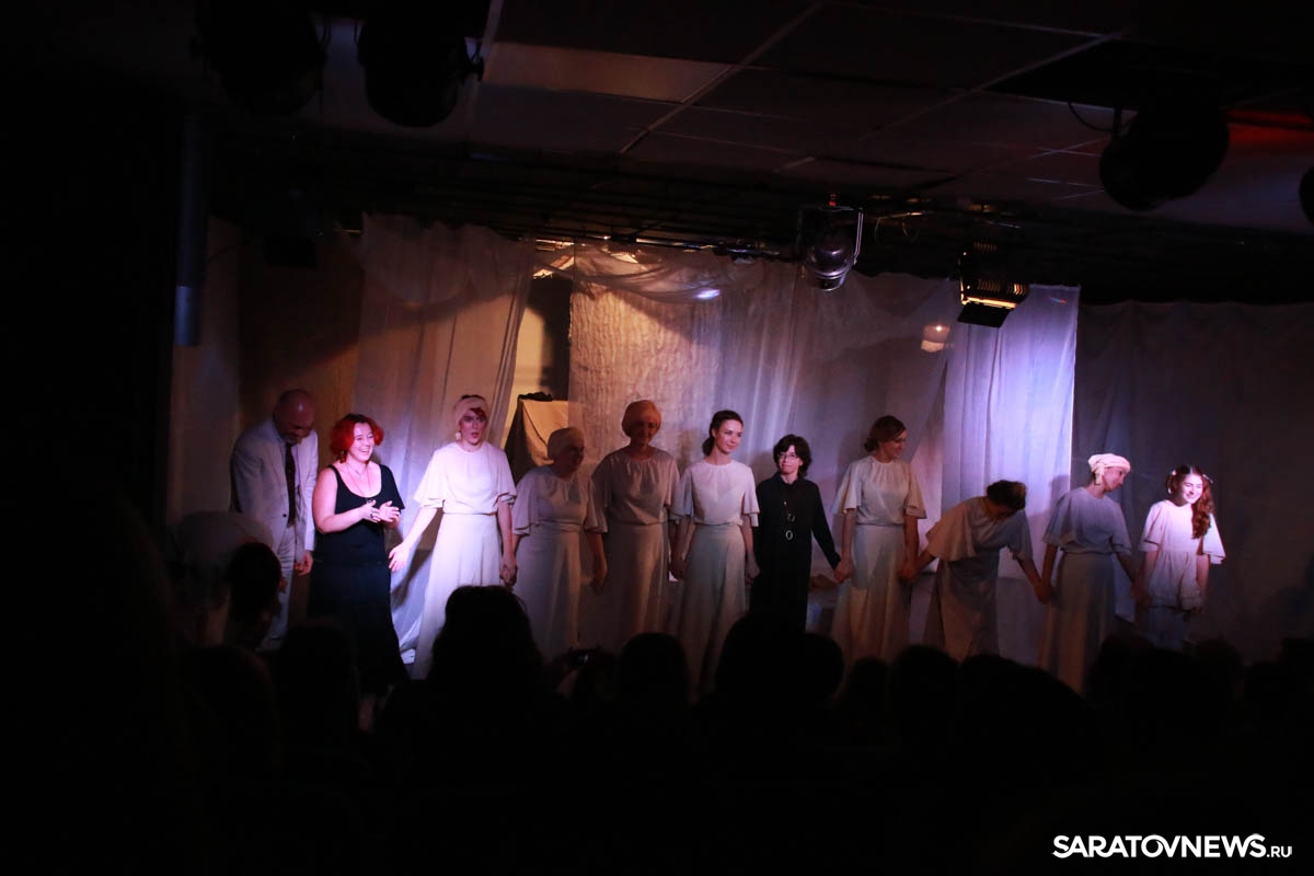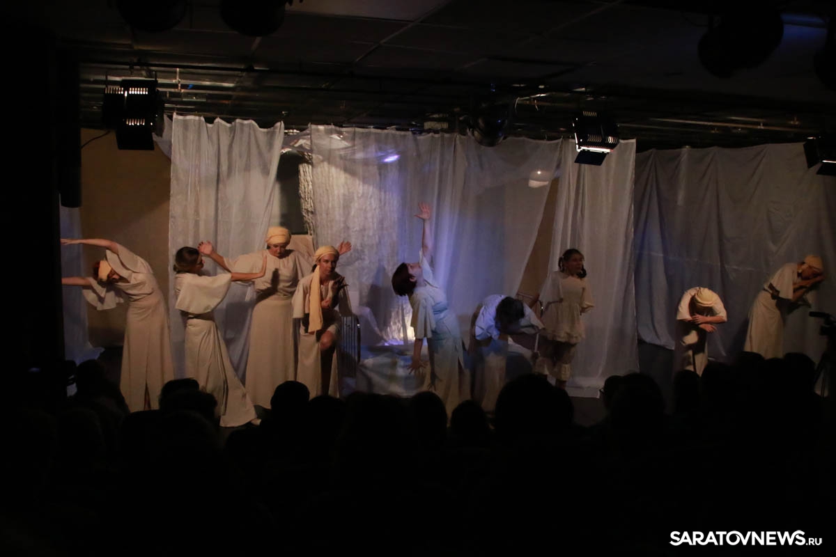Зрители погрузились в пространство женской мягкости, легкости, эмоциональности, глубина которых пронзительно контрастируют с темой смерти и потери близких. Той темой, которая побудила автора прозы взяться за перо.Темой, которая прорывается сквозь оформленную в мягкие светлые тона сцену в лице облаченных в черные мантии фигур, забирающих близких людей. Они врываются нежданно в мирную жизнь героини девочки, подростка, девушки. И исчезают, оставляя наедине с болью и опустошенностью, вырывающуюся в психоделическом танце и песне, открывая, вместе с тем, новую страницу жизни.