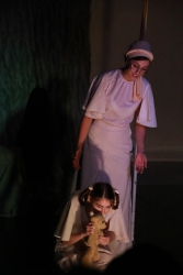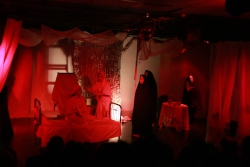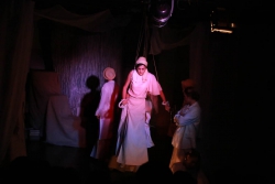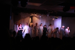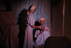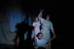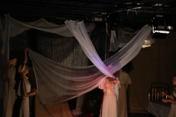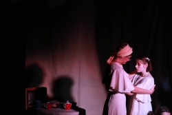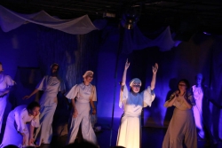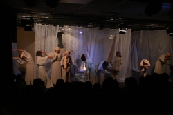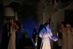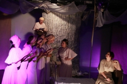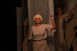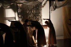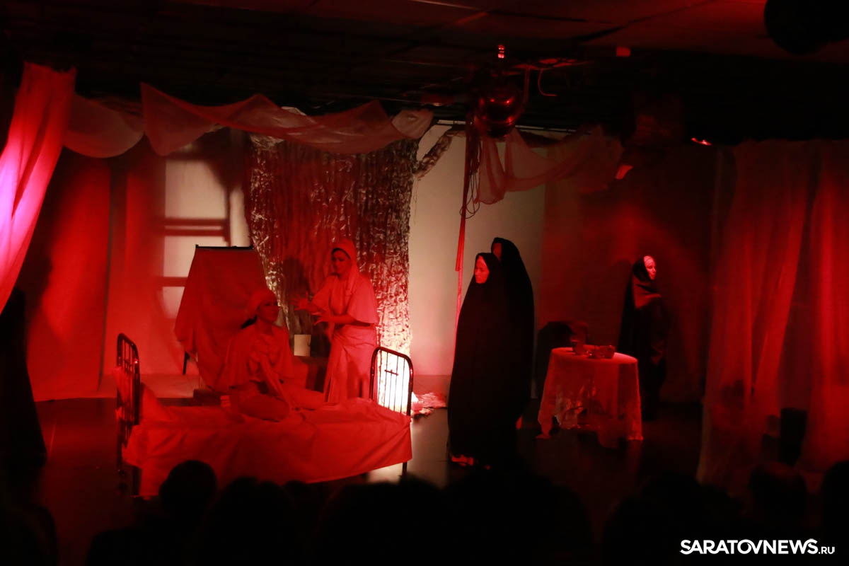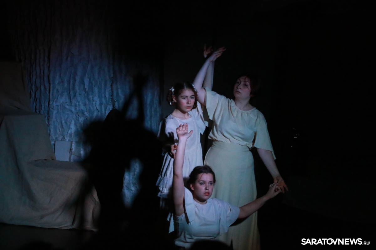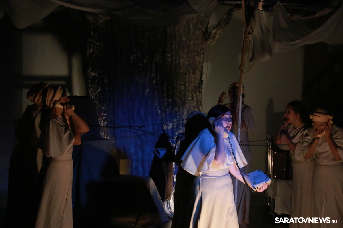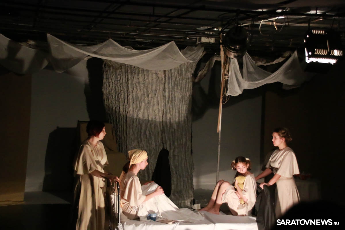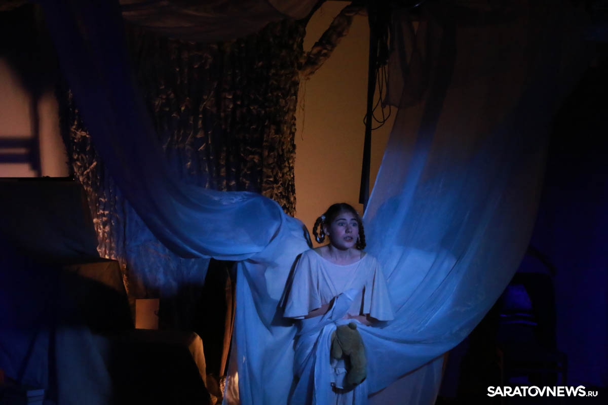 Зрители погрузились в пространство женской мягкости, легкости, эмоциональности, глубина которых пронзительно контрастируют с темой смерти и потери близких. Той темой, которая побудила автора прозы взяться за перо.Темой, которая прорывается сквозь оформленную в мягкие светлые тона сцену в лице облаченных в черные мантии фигур, забирающих близких людей. Они врываются нежданно в мирную жизнь героини девочки, подростка, девушки. И исчезают, оставляя наедине с болью и опустошенностью, вырывающуюся в психоделическом танце и песне, открывая, вместе с тем, новую страницу жизни.