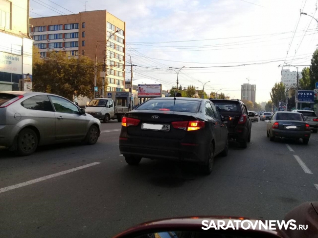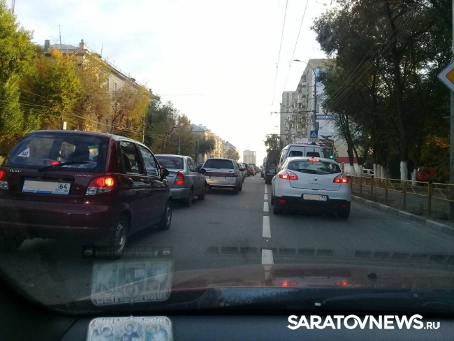 Столкнувшиеся машины перегородили среднюю полосу движение по улице Чернышевского. В итоге со стороны Заводского в сторону центре образовалась пробка, движение машин сильно затруднено.