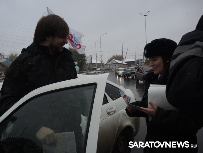 Сегодня на Предмостовой площади в Саратове прошла акция в преддверии Дня автомобилиста. Начальник ГИБДД Саратова Алексей Новиков вручил водителям транспортных средств подарки.