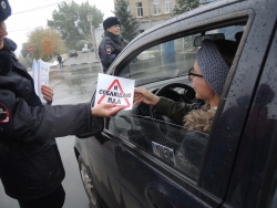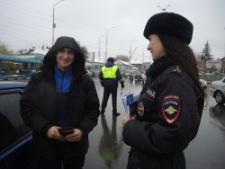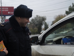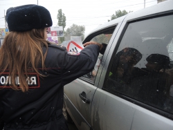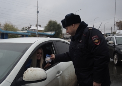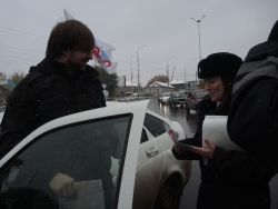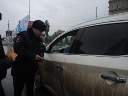 Сотрудники городской ГИБДД во главе с Алексеем Новиковым поздравляли автомобилистов с предстоящим праздникам. Водителям вручались памятки по правилам дорожного движения, календари, блокноты, дисконтные карты на автомойки и наклейки "Я соблюдаю ПДД".