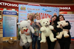 Ну а в завершении праздника главными героинями мероприятия стали прекрасные леди – мамы и бабушки. Дамы храбро сражались на сцене, отвечая на скорость на вопросы сложной викторины о красоте. Победительницу ждал ценный приз - сертификат от сети магазинов "Академии красоты". Остальные получили утешительные подарки – огромных плюшевых медведей от торговой марки "Медведи России".