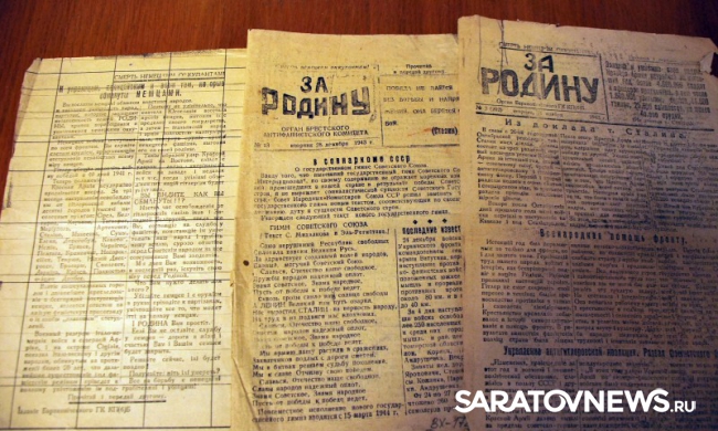 Жительница Саратова Елена Чистякова привезла в Москву и отдала в отдел комплектования фондов Музея Победы листовки и номер газеты "За Родину", которые выпускались с 1943 по 194 годы в партизанском отряде имени Пономаренко, который действовал на территории Слонимского района Белоруссии. Сообщается, что мама и бабушка саратовчанки состояли в этом отряде, выполняя обязанности наборщицы и редактора.