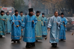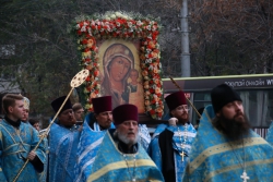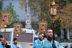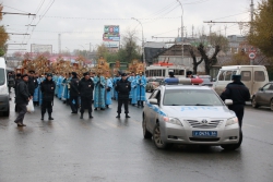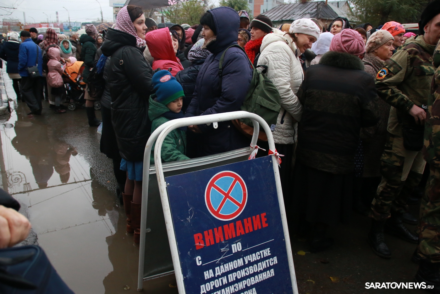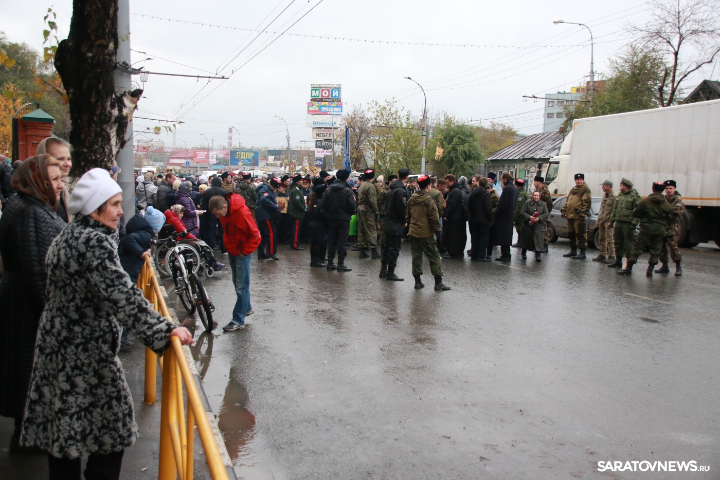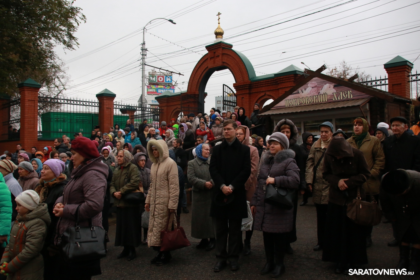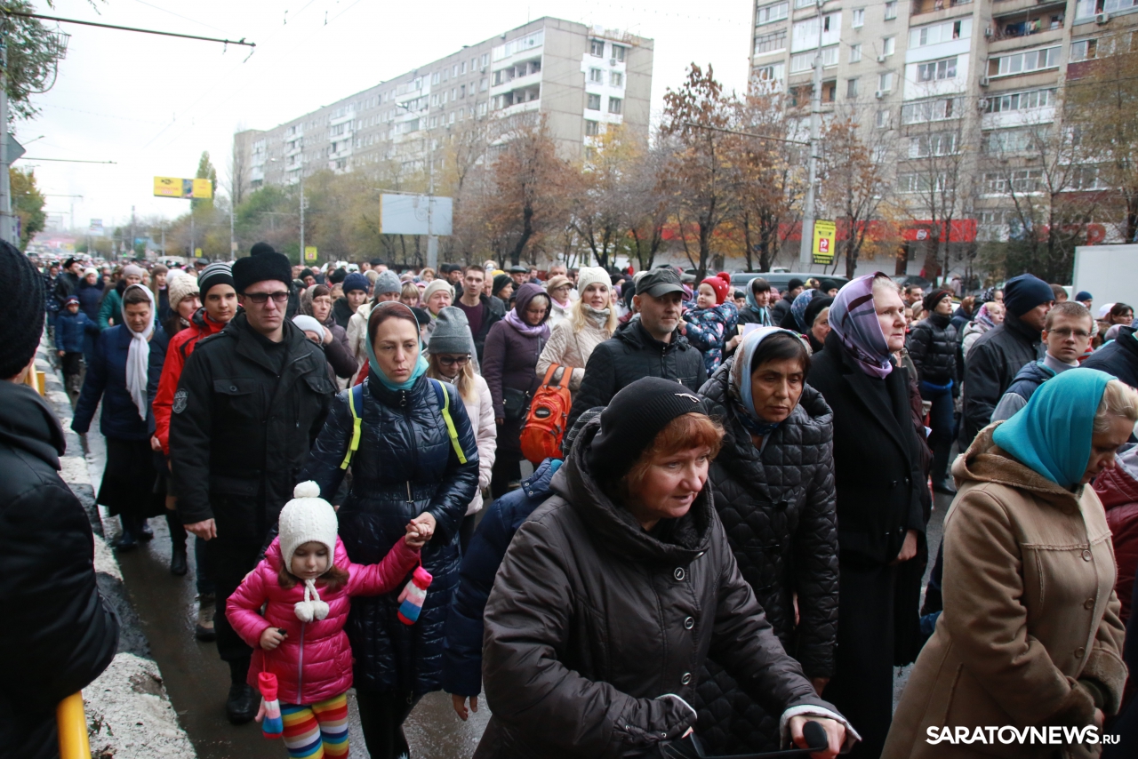 Ее провели Митрополит Саратовский и Вольский Лонгин и Епископ Покровский и Николаевский Пахомий. После окончания службы колонна священников и горожан направилась к Свято-Троицкому кафедральному собору. Для свободного движения процессии полицейские полностью перекрыли полосу движения по Чернышевского в сторону улицы Московской. Горожане снимали происходящее на телефоны, а также присоединялись к шествию. Завершилось мероприятие праздничным молебеном Божией Матери около Троицкого собора. Там хранится старинный список с чудотворного Казанского образа Пресвятой Богородицы XVII века.