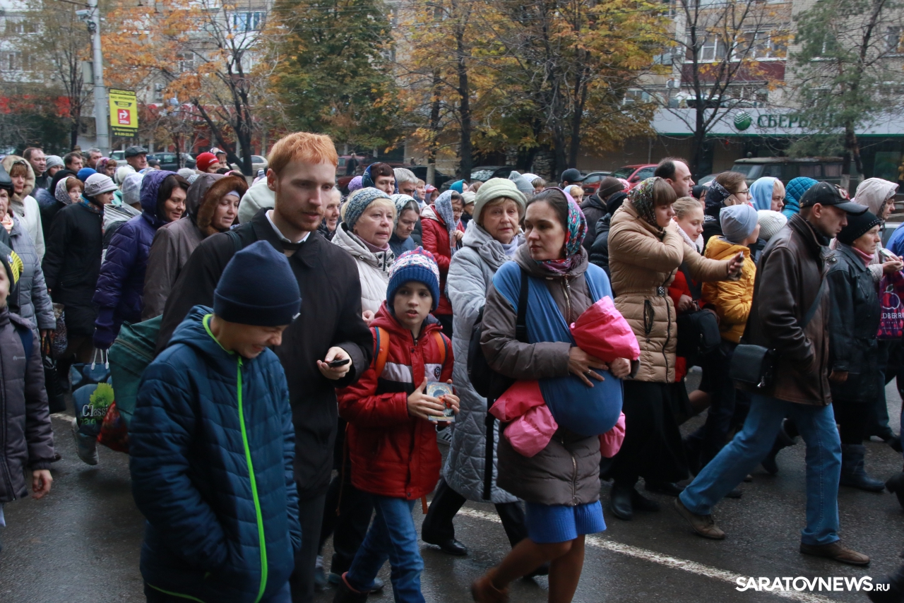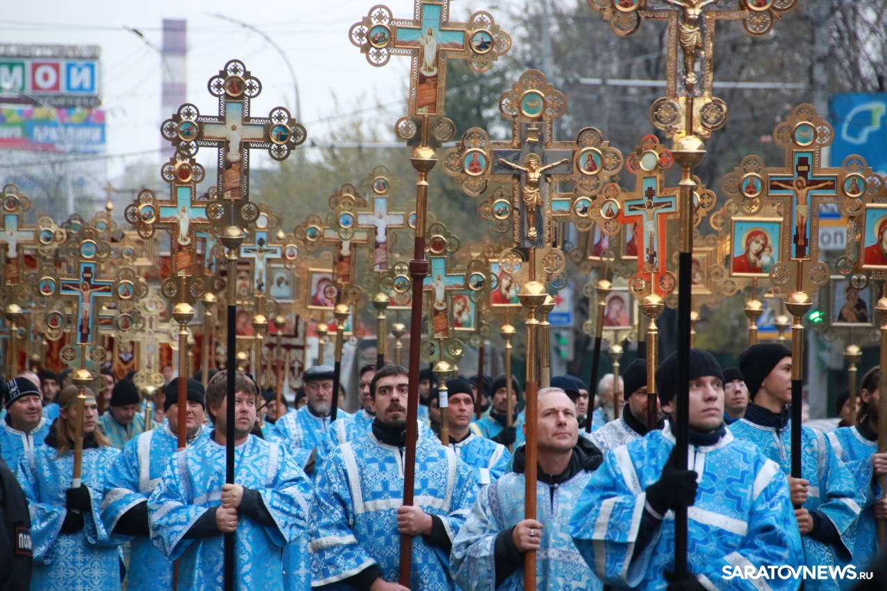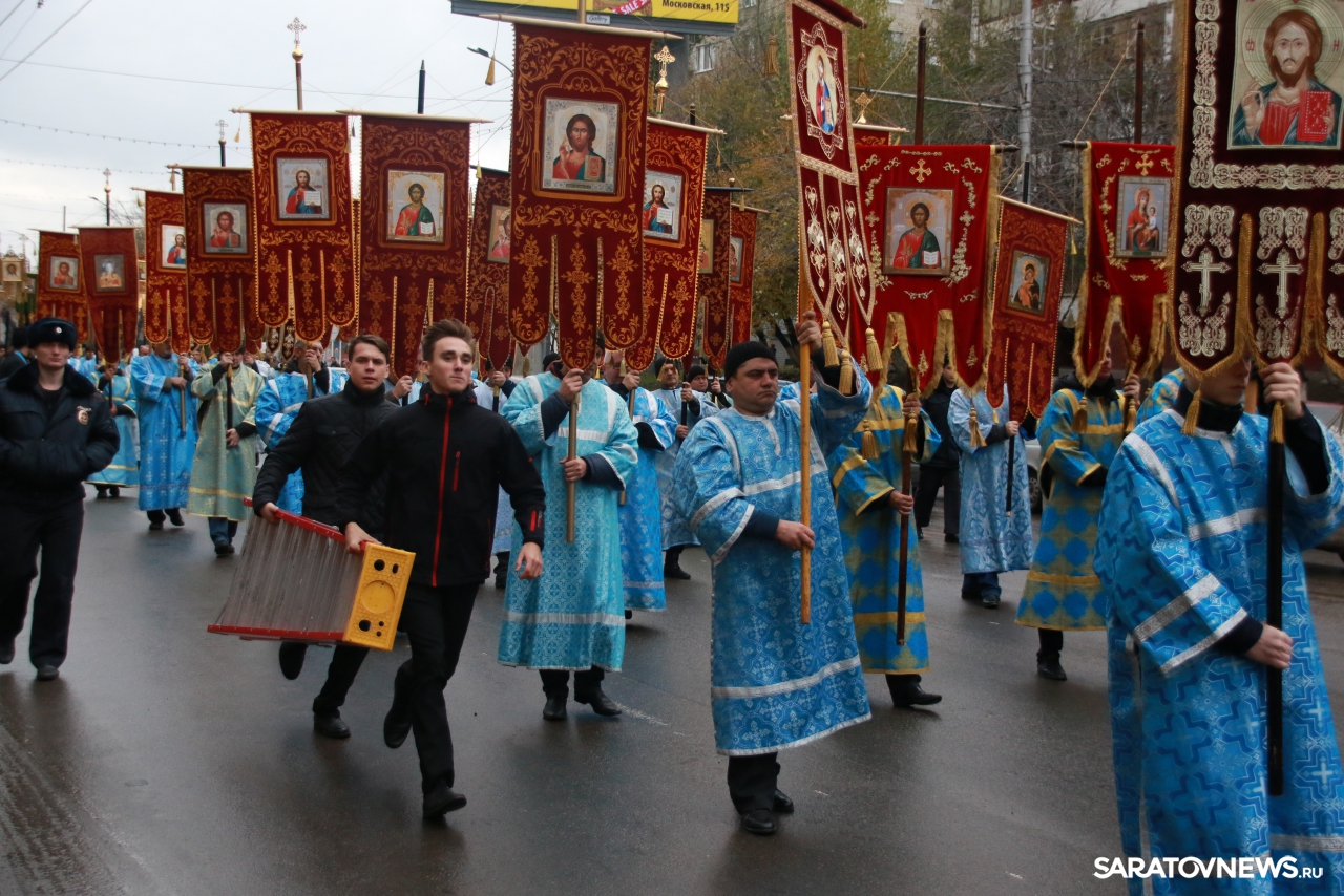 Сегодня, 4 ноября, в Саратове по улице Чернышевского прошел крестный ход. Утром в храме в честь иконы Божией Матери "Казанская" в Заводском районе началась Божественная литургия.