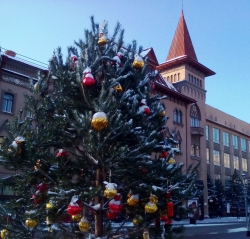 Елки, украшенные гирляндами и игрушками, поставят на открытой площадке напротив здания Саратовской консерватории и на проспекте Кирова (между Вольской и Горького) рядом с торговым комплексом.