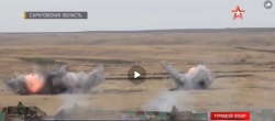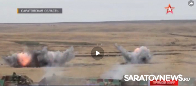 "Во время учений использовались специальные термобарические снаряды, которые дают "объемный" взрыв. После залпов часть позиций условного врага уцелела, и военные пустили в ход огнеметы "Шмель". "Боевиков" добивали почти в упор с 200 метров с привлечением к учениями командиров подразделений", - говорится в сюжете канала.
