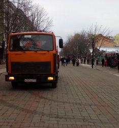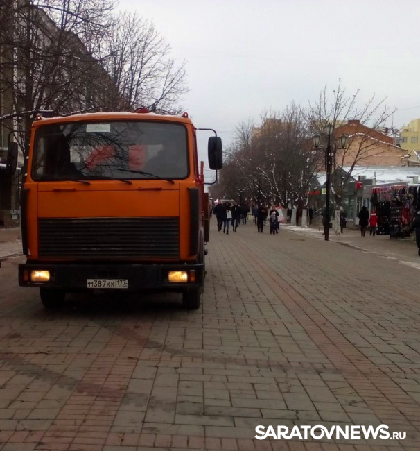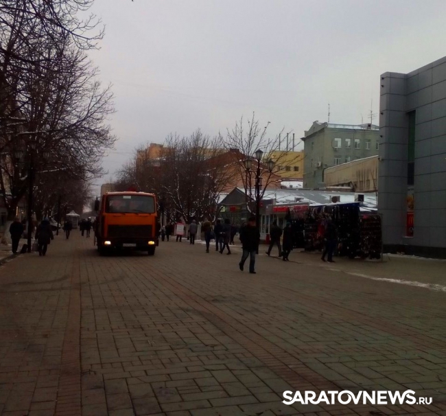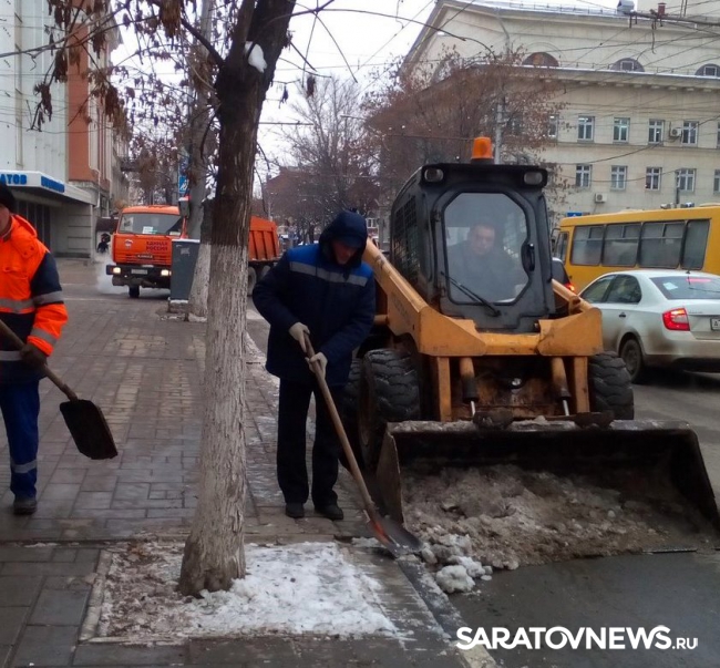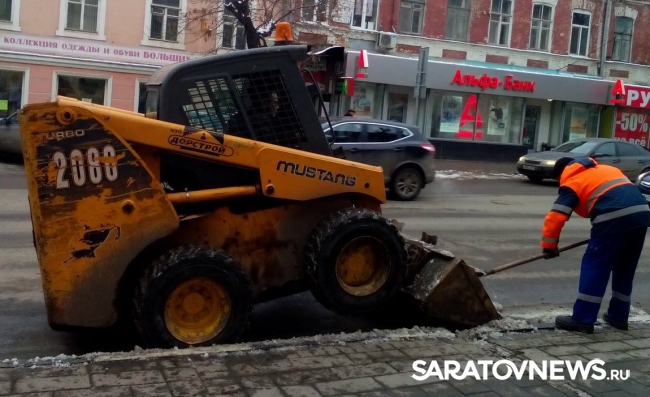 В центре Саратова продолжаются работы по расчистке улиц и тротуаров от снега и наледи.