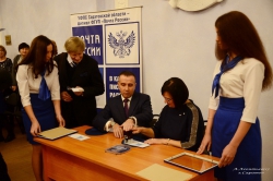 Перед началом праздничного концерта, в фойе филармонии, работало выездное почтовое отделение, в котором любой желающие могли купить памятный конверт.