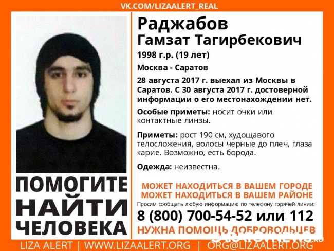 В Саратове разыскивают пропавшего 19-летнего Гамзата Раджабова.