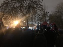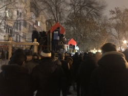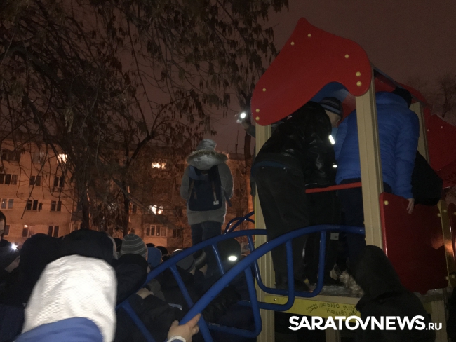 Стоит отметить, что общественный порядок охраняют более 30 полицейских, а также "Народная дружина". Они не разгоняют толпу, однако стараются не допустить порчи детских площадок и лавочек, сгоняя сторонников Навального, которые на них забираются, чтобы увидеть оппозиционера.