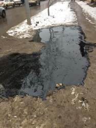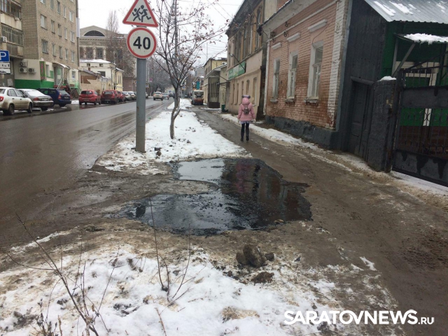 От редакции. Не исключено, что саратовские коммунальщики спешно начали выполнять поручение главы города Михаила Исаева по ликвидации последствий вскрышных работ и вылили жидкий асфальт в грязь. Теперь школьникам будет удобнее ходить в школу и пересекать в этом месте улицу.