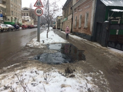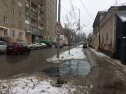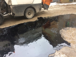 Сегодня в центре Саратова на улице Первомайская жидкий асфальт вылили прямо в грязь.
