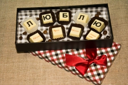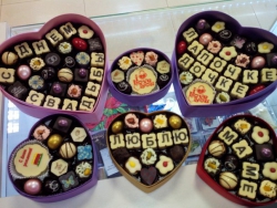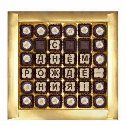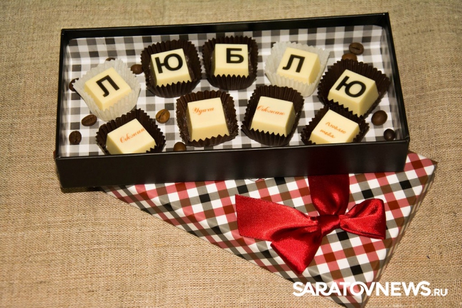 Например, можно составить адресное послание из шоколадных букв или собрать тематические пазлы из шоколадных фигурок. Здесь есть даже шоколадные открытки и уникальные медали с праздничными надписями.